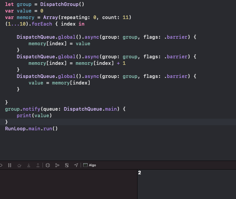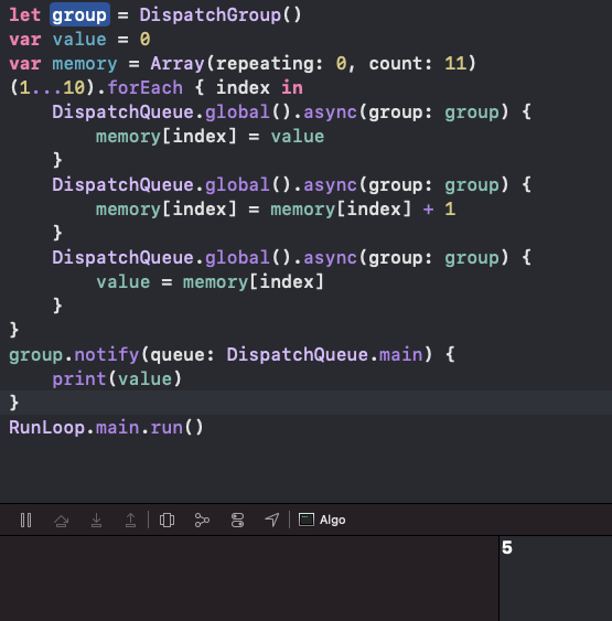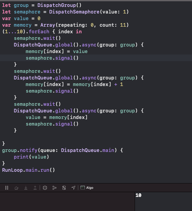 Race condition은 디버깅하기 굉장히 복잡합니다. 이경우에 10이 나오게 하려면 어떻게 해야 할까요? serial queue를 이용합니다.