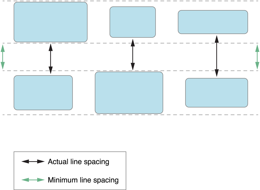 Line 간 간격은 일정하지만, Item 간 간격을 다를 수 있습니다. Line 간 간격은 각 Line별 가장 큰 Item 크기로 인해 정해집니다.