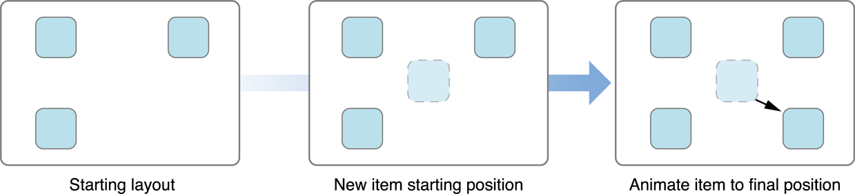 CollectionView는 필요하다고 판단하면 Layout 객체에 이를 요구합니다. 예를 들어 처음 표시될 때, 크기가 조정될 때 레이아웃 정보를 요청합니다. layout의 invalidateLayout()을 이용하여 기존 레이아웃 정보를 버리고 새 레이아웃 정보를 생성하게 할 수 있습니다.